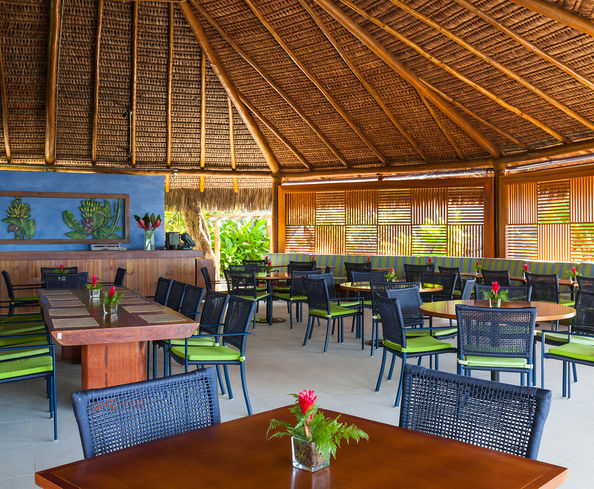 O resort é envolto por um coqueiral a perder de vista, emoldurado por um mar verde esmeralda de águas mornas o ano inteiro que se estende por doze quilômetros de praia de areias brancas protegidas por recifes de coral e piscinas naturais.